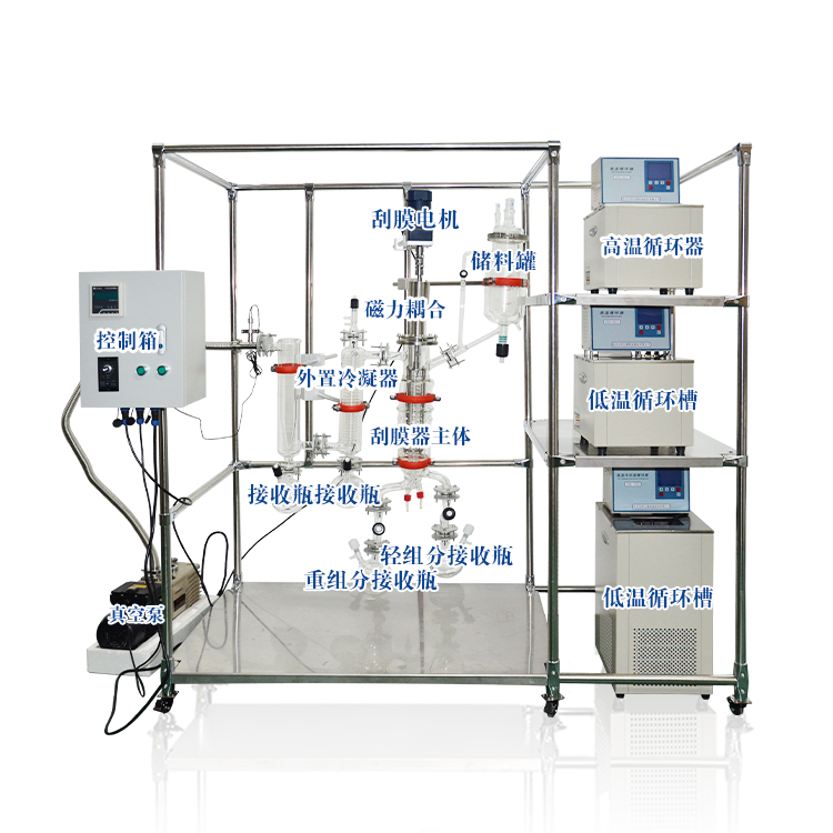 短程分子蒸馏仪是一种特殊的液--液分离技术,在高真空状态下,使蒸气分子的平均自由程大于蒸发表面与冷凝表面之间的距离,从而可利用料液中各组分蒸发速率的差异,对液体混合物进行分离.  本产品是短程蒸馏设备的首选替代品: 停留时间更短,处理温度更低,能够连续作业不破坏真空环境,可作为即插即用的行业交钥匙总包设计解决方案。